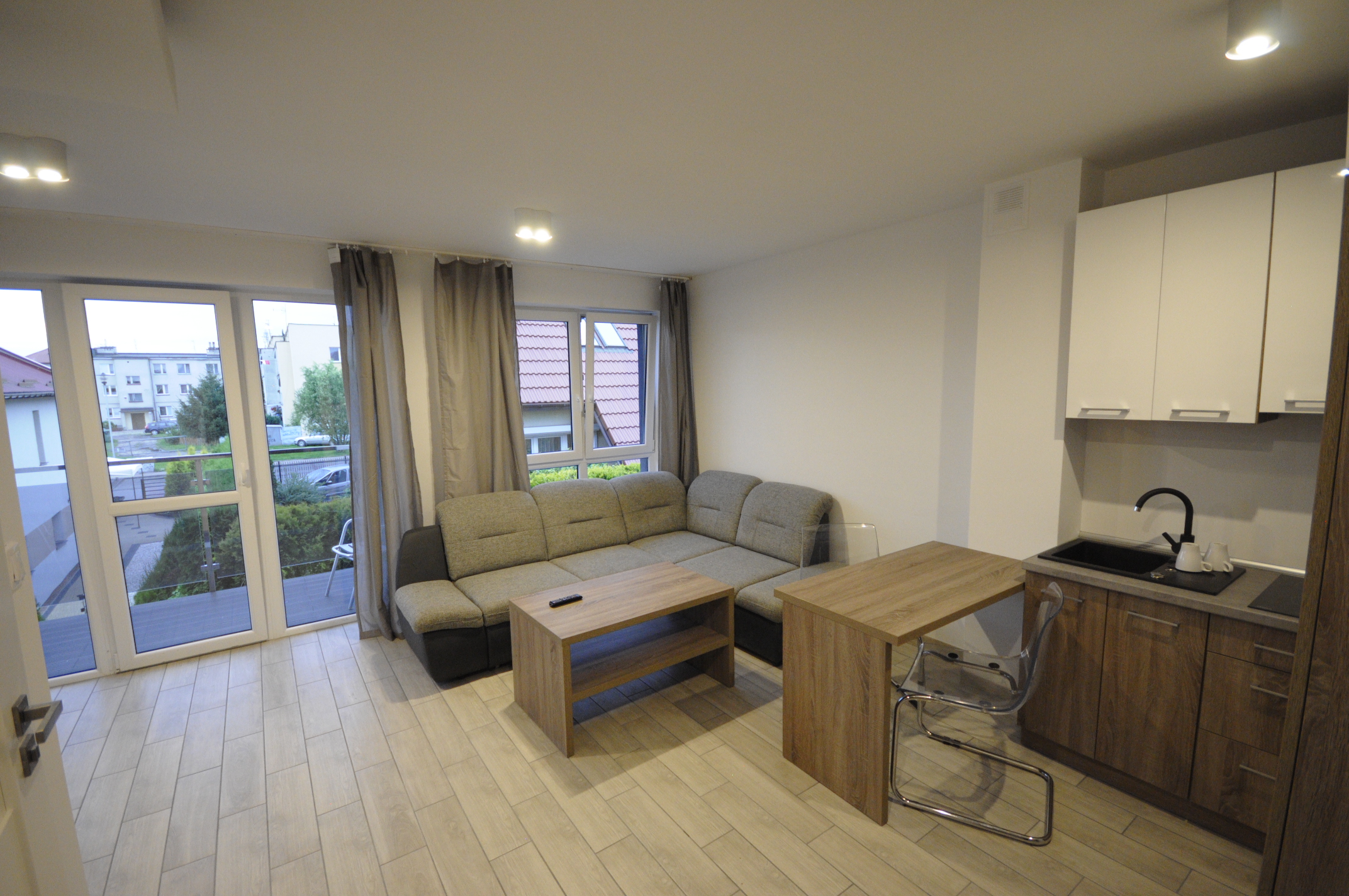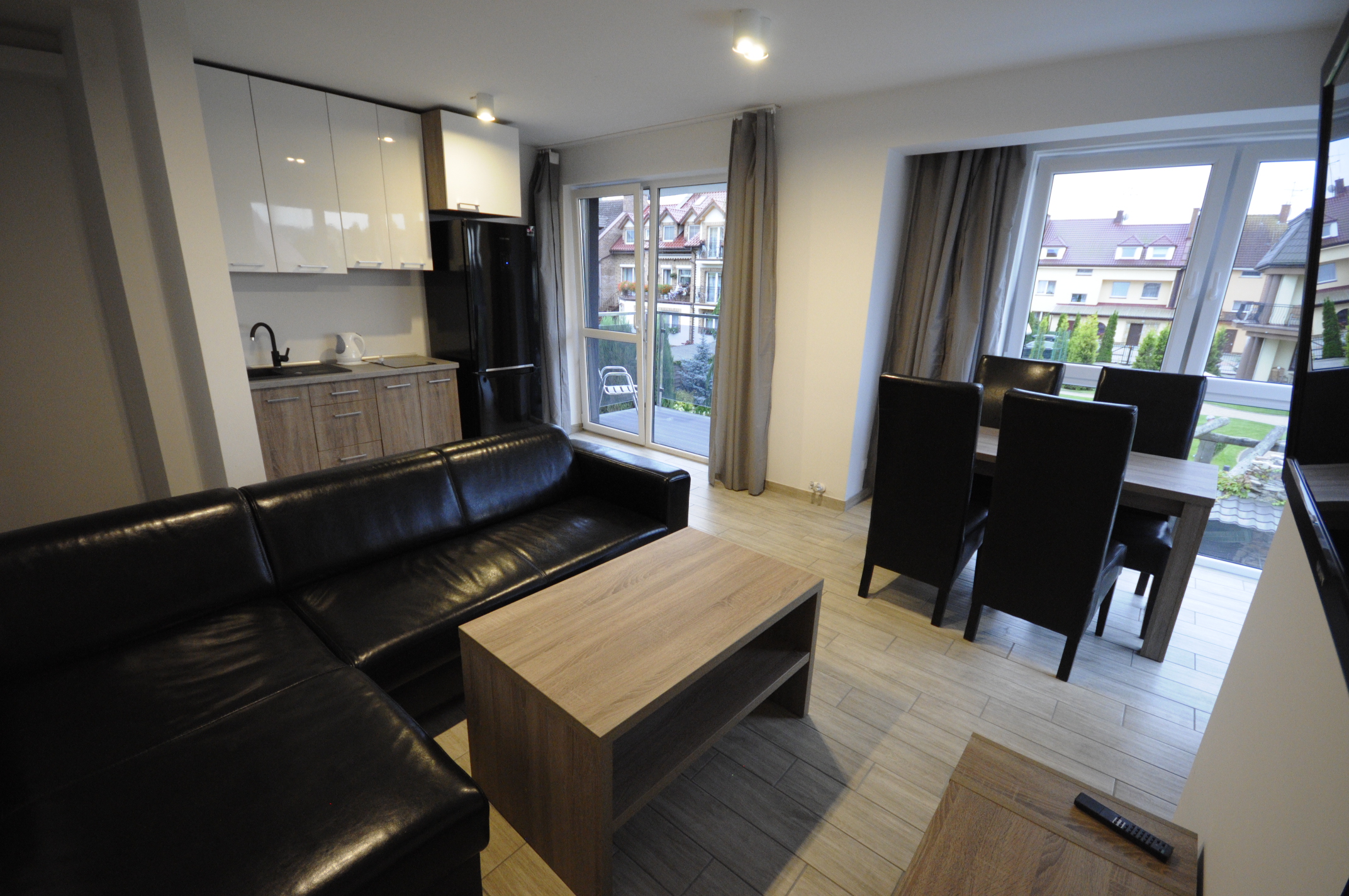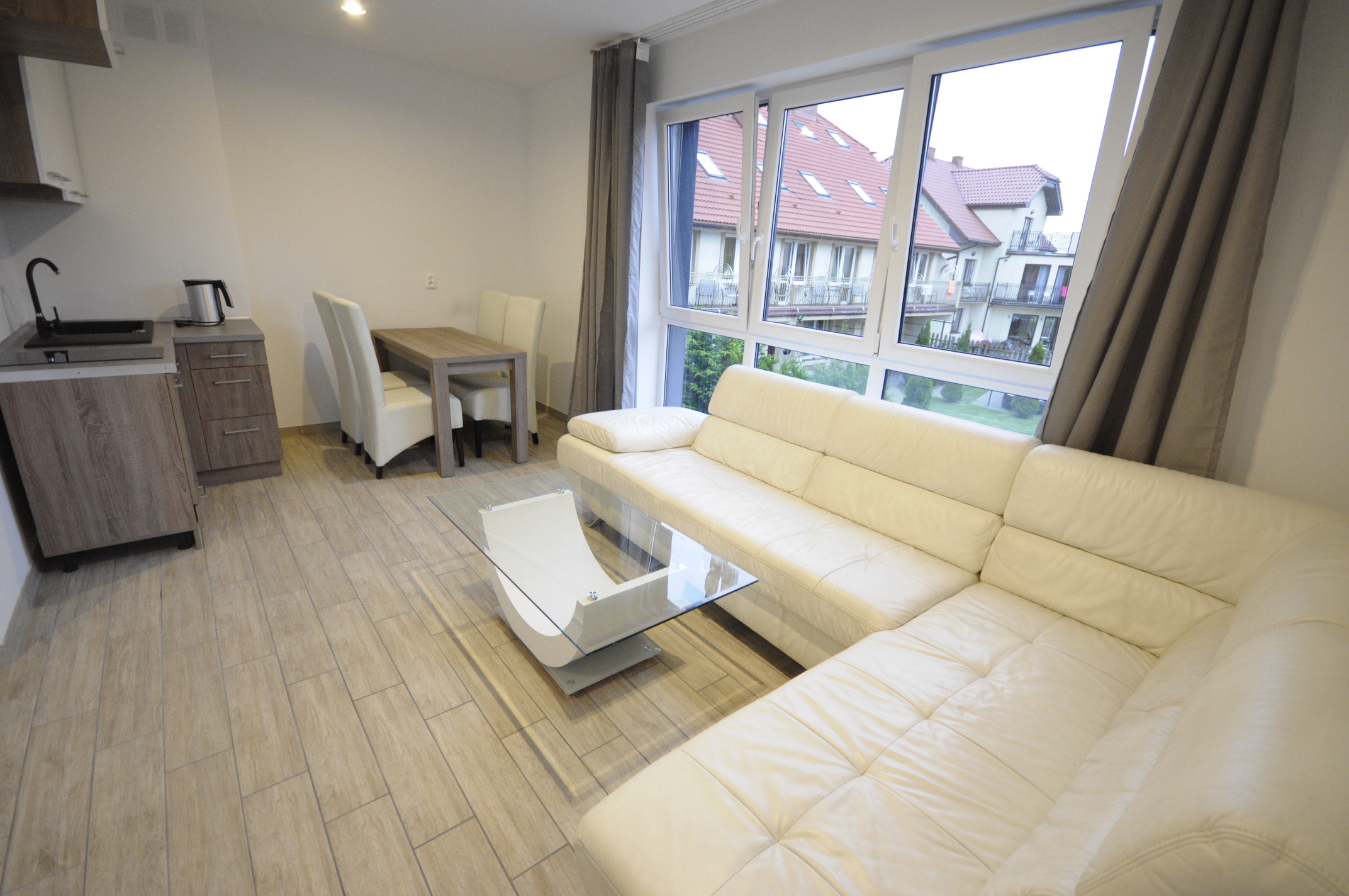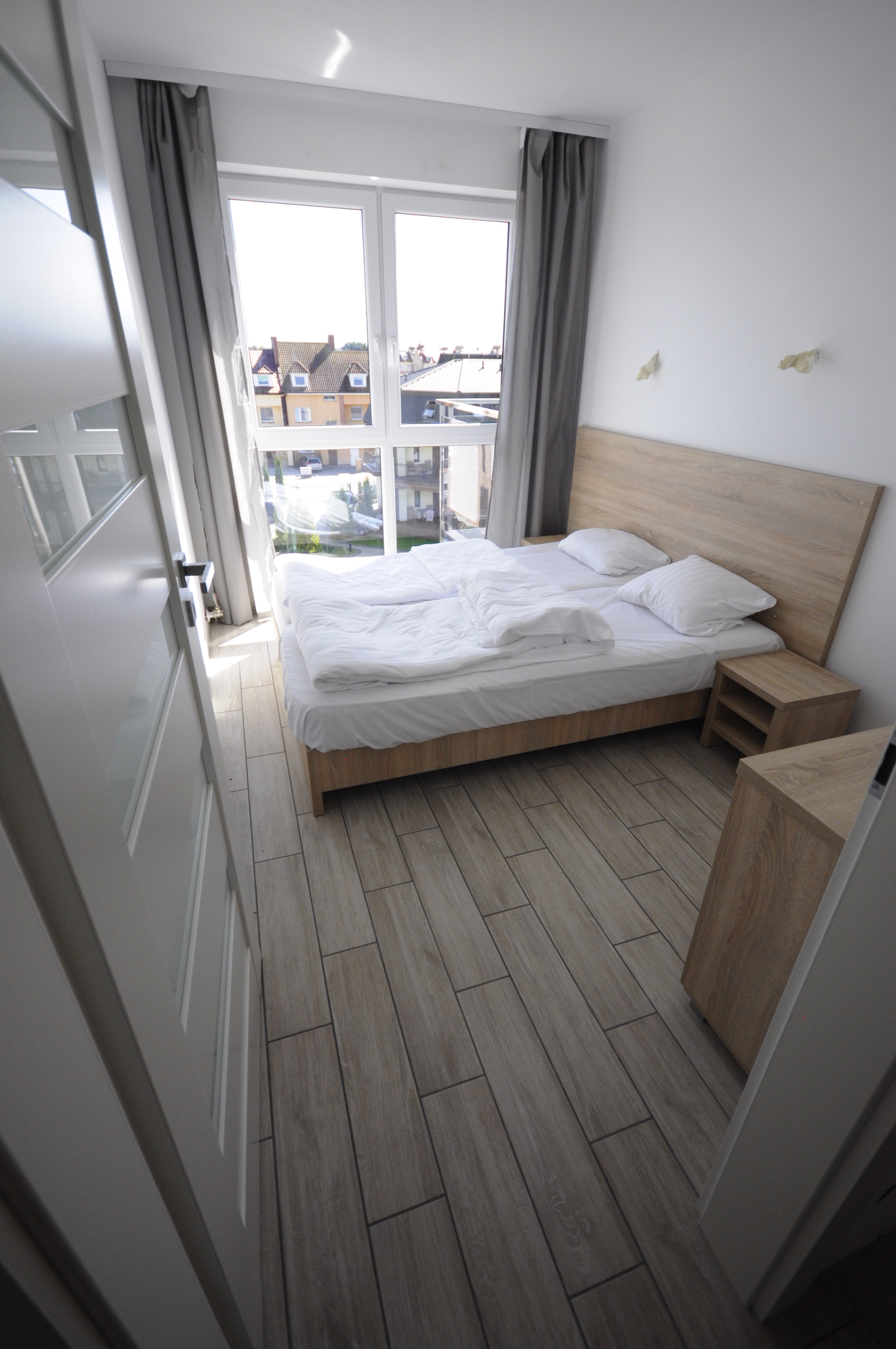 W skład każdego apartamentu wchodzi: 1 lub 2 pokoje o powierzchni od 26m2 do 48m2, aneks kuchenny (płyta grzewcza, czajnik, lodówka), łazienka z prysznicem, balkon. Istnieje możliwość dostawienia dostawki. Żelazko udostępniamy na życzenie. W obrębie obiektu znajduje się parking.